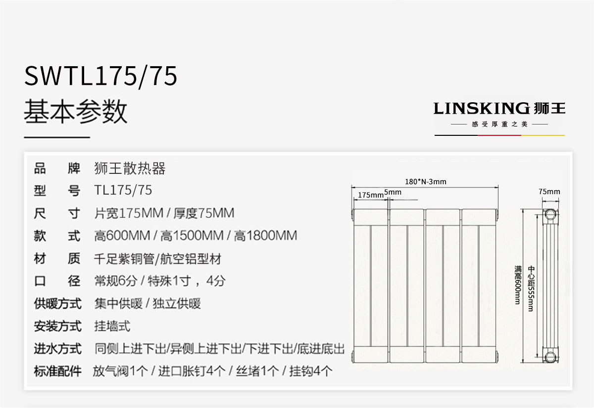 銅鋁復合暖氣片/散熱器_175x75